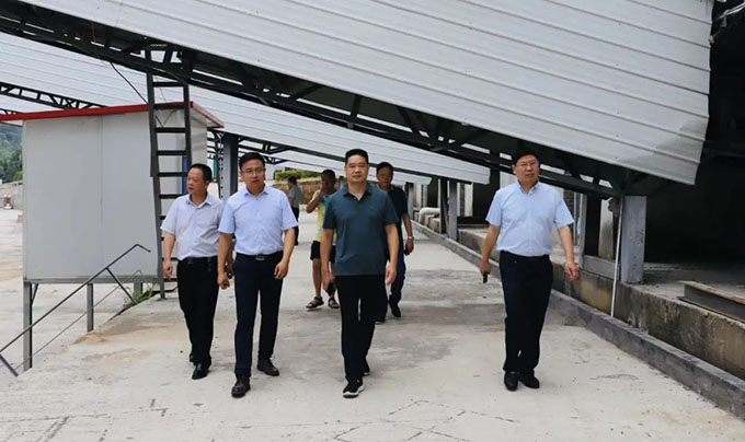 萬寶投資集團(tuán)黨委書記、董事長陽文林(左三),萬寶投資集團(tuán)總經(jīng)理、萬鵬建材董事長徐業(yè)波(右一)等實(shí)地察看鑫鑫采石場場區(qū)